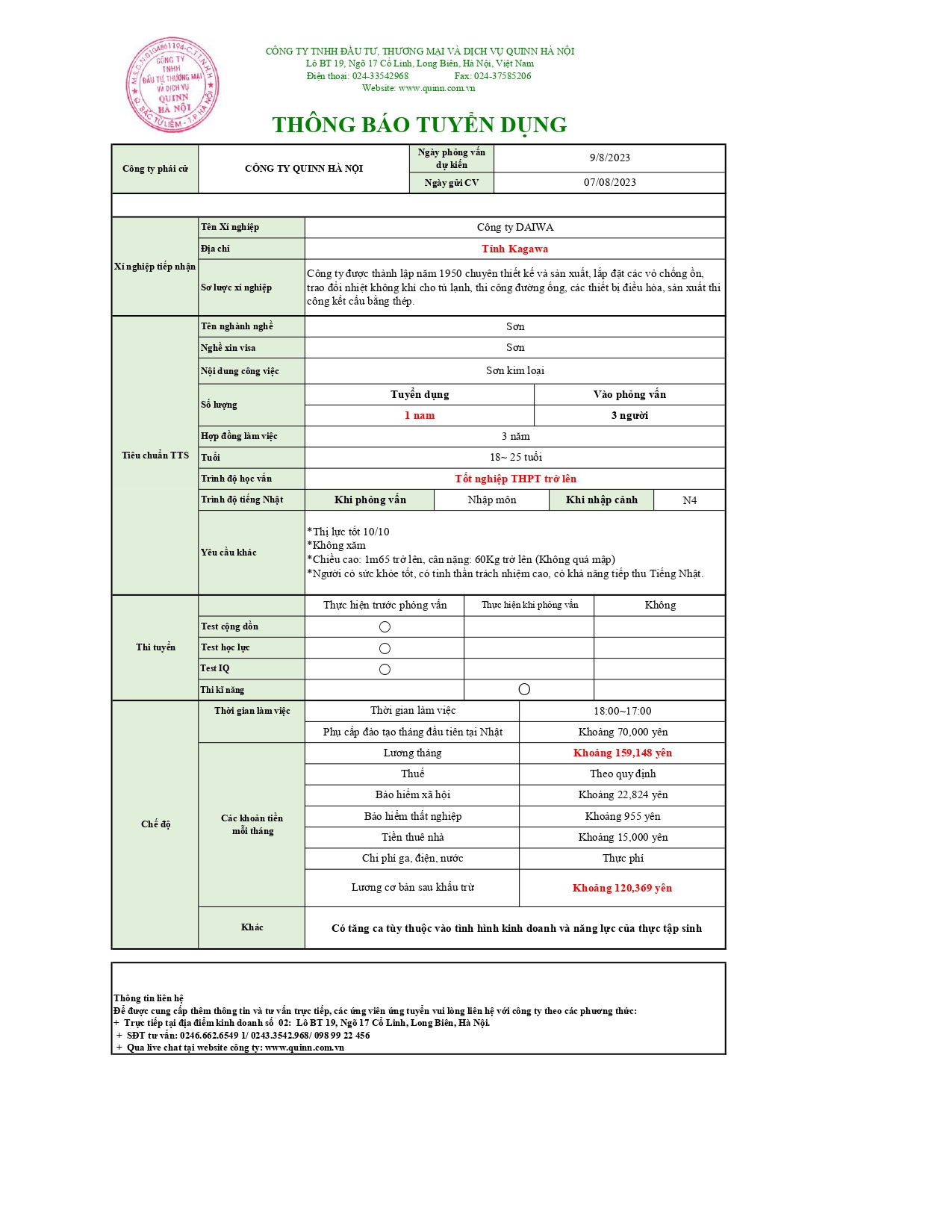 Liên hệ{name_null}{phone_null}{mail_error}{mail_null}{address_null}content_nullGửiHủy Tin tức mớiThông tin một số quy định liên quan trong giai đoạn chuyển tiếp từ chương trình Thực tập [...]13:36:00 24-02-2026Thông tin tổ chức kỳ thi đánh giá kỹ năng trong lĩnh vực sản xuất sản phẩm công [...]13:22:00 03-12-2025Thông báo về chế độ bảo hiểm công Nhật Bản dành cho thực tập sinh nước [...]14:18:00 15-11-2025Chính thức vận hành Ứng dụng tìm kiếm việc làm tại Nhật Bản DOLAB-JICA từ ngày 30 tháng 7 [...]23:40:15 11-10-2025Thông tin tổ chức kỳ thi đánh giá năng lực tiếng Nhật cơ bản (JFT – [...]08:11:00 29-09-20258 tháng đầu năm 2025: Gần 100 nghìn lao động Việt Nam đi làm việc ở nước [...]13:27:02 09-09-2025Kết quả công tác đưa lao động Việt Nam đi làm việc ở nước ngoài tháng 7 và 7 tháng đầu [...]14:24:00 28-08-2025XUẤT KHẨU LAO ĐỘNG GIỮ ĐÀ TĂNG TRƯỞNG15:12:00 11-08-2025NGƯỜI LAO ĐỘNG "SĂN" VIỆC Ở NƯỚC NGOÀI NHƯ CÁCH TÌM ĐỒ ĂN TRÊN ỨNG [...]16:50:00 31-07-2025THÔNG BÁO TUYỂN LAO ĐỘNG ĐI LÀM VIỆC TẠI SINGAPORE - ĐƠN THỢ GẠCH ỐP LÁT, XÂY [...]14:20:00 11-12-2024THÔNG BÁO TUYỂN DỤNG NHẬT BẢN 08/2023 Tags:,