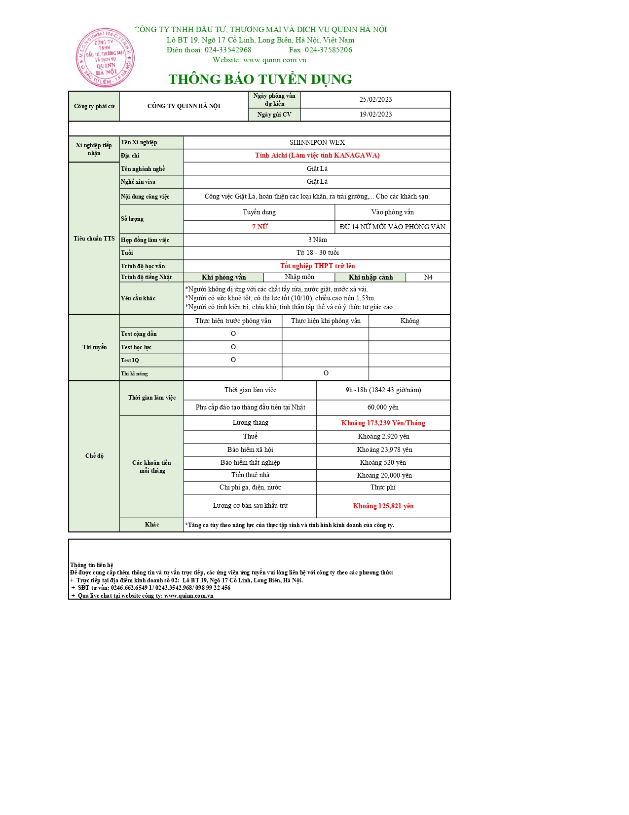 Liên hệ{name_null}{phone_null}{mail_error}{mail_null}{address_null}content_nullGửiHủy Tin tức mớiBộ Xây dựng yêu cầu không tổ chức chuyến bay qua khu vực vùng trời Trung [...]15:58:00 06-03-2026Thông tin một số quy định liên quan trong giai đoạn chuyển tiếp từ chương trình Thực tập [...]13:36:00 24-02-2026Thông tin tổ chức kỳ thi đánh giá kỹ năng trong lĩnh vực sản xuất sản phẩm công [...]13:22:00 03-12-2025Thông báo về chế độ bảo hiểm công Nhật Bản dành cho thực tập sinh nước [...]14:18:00 15-11-2025Chính thức vận hành Ứng dụng tìm kiếm việc làm tại Nhật Bản DOLAB-JICA từ ngày 30 tháng 7 [...]23:40:15 11-10-2025Thông tin tổ chức kỳ thi đánh giá năng lực tiếng Nhật cơ bản (JFT – [...]08:11:00 29-09-20258 tháng đầu năm 2025: Gần 100 nghìn lao động Việt Nam đi làm việc ở nước [...]13:27:02 09-09-2025Kết quả công tác đưa lao động Việt Nam đi làm việc ở nước ngoài tháng 7 và 7 tháng đầu [...]14:24:00 28-08-2025XUẤT KHẨU LAO ĐỘNG GIỮ ĐÀ TĂNG TRƯỞNG15:12:00 11-08-2025NGƯỜI LAO ĐỘNG "SĂN" VIỆC Ở NƯỚC NGOÀI NHƯ CÁCH TÌM ĐỒ ĂN TRÊN ỨNG [...]16:50:00 31-07-2025THÔNG BÁO TUYỂN DỤNG NHẬT BẢN 02/23 Tags:,